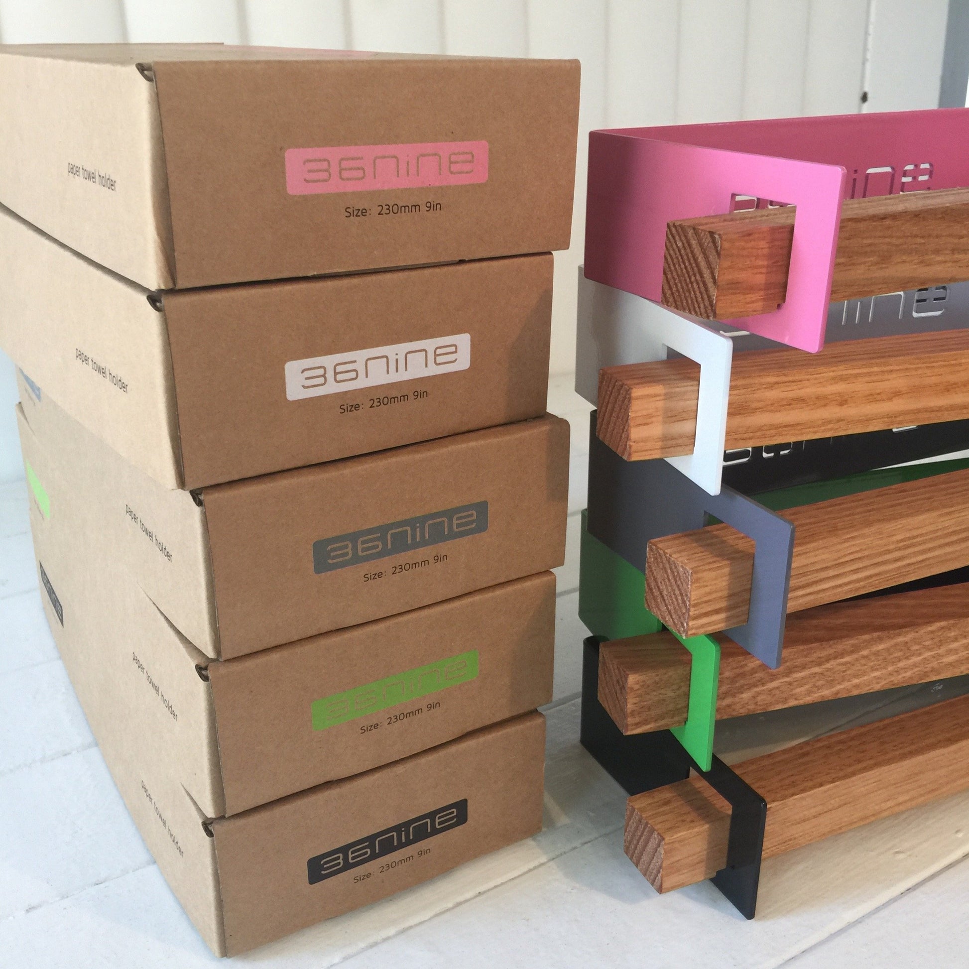 Our holders are made from recyclable mild steel and powder coated for a durable eco-friendly finish. The wooden spindle pegs are made from sustainably grown Australian hard wood and sealed with natural oils. All of our products are designed to be carbon neutral by the end of their functional life and come apart easily for recycling.